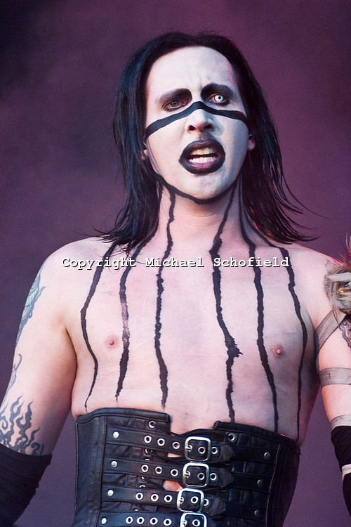 We tour the churches and cathedrals; he looks at each religious detail with devotion and reads the brochures “Just in case, caution is the rule,” he says. Inside an almost millennium-old Gothic cathedral, he stands pensive, staring at the great crucifix which dominates the church and he confides to me: “I was so traumatized as a child by all the Christian stories that, when I became an adult, the only way to punish my tormentors was to present them this image of the Antichrist. St. John’s revelations define the Antichrist as someone who does not believe in Jesus. The modern day Antichrist is a rock'n'roll singer who has become a superstar. The antichrist will always be a work-in-progress. The title Antichrist Superstar – which is in some ways my version of "We will rock you" – is a vision of apocalypse which came to me in a dream: it’s the last day on Earth and decrepit floats held down by monsters parade through Time Square. I was at the head of the parade, inaccessible like the pope, urging people to repent by forcing them to see the images of unhappiness, making them understand that everything was nothing but chaos already and that anyway it was too late…I explained to them that for the sake of seeing and doing everything, things have lost their values. I explained to them that breaking taboos had become a matter of course; that it was necessary to plunge into the abyss of the extreme in order to recover one’s innocence. I am fundamentally a Christian. Inside myself I have a great need for innocence and purity. The Antichrist is a nihilist who prefers to destroy everything rather than to witness the perpetuation of this decadence. I’m not against religion, but rather against people’s use of religion. I love the idea of being consumed by people who believe in this religion. I had lost all hope and I was against life. It’s the Antichrist who becomes human and begins to feel something, especially love. Love is something which destroys me. It’s a bit like the myth of the vampire you need to kill with a stake through the heart. I believe I’m more of a Christian than many others, more than all those Christians that hate me. I consider Jesus the first celebrity. The first rock star. He’s the number one product in terms of merchandising!” Young catholic devotees gaze at him while he speaks to me, emphasizing his words with vigorous gestures, his characteristic gothic rings adorn his hands, and he stares at the crucifix with his gothic eye. The murmurs from the Christians make him smile: “With the passage of time and because of my own experiences, I don’t take them seriously. When I toured for Antichrist superstar and guns, god and government I had to be determined to survive despite all these socially-conditioned terrorists. During golden age of grotesque I gracefully unfurled my wings facing the newfound attention I was receiving, without of course forgetting the massive media publicity. With eat me drink me I was a bit more conventional, because I was being carefully watched, but I felt a new type of adrenaline, more calming and satisfying. Then my wings were even more extended, I was able to resuscitate myself in peace. The lying libelous pamphlets and the blasphemous, and even criminal, accusations progressively disappeared. The evolution is finally perceivable, as if they had sprayed my surroundings with an air freshener named ‘tolerance’.” He whispers this, looking at the schedule for the Sunday masses and daily vespers before scanning the inside of the cathedral with his dark look.